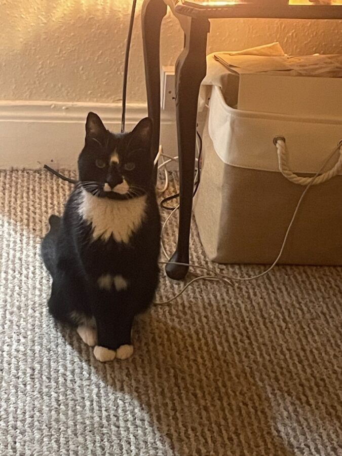 He went out and hasn’t come back which is very out of character for him. He doesn’t have a collar on but is microchipped.